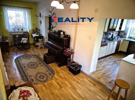 1. NP: vstupní chodba, nově zrekonstruovaná koupelna s vanou i sprchovým koutem, samostatné WC, kuchyň, prostorná obytná hala propojená se třemi pokoji.