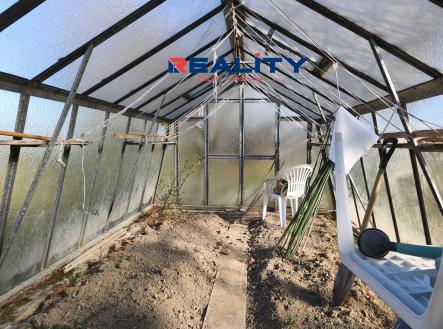 Součástí je dřevěný domek na nářadí a prostor vhodný pro chov drobné drůbeže či králíků. K dispozici je rovněž skleník pro pěstování zeleniny.